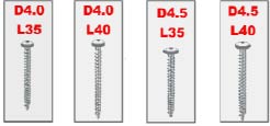 Саморезы рекомендуемые компанией INTEH для применения с дюбелями марки DWU-N6: